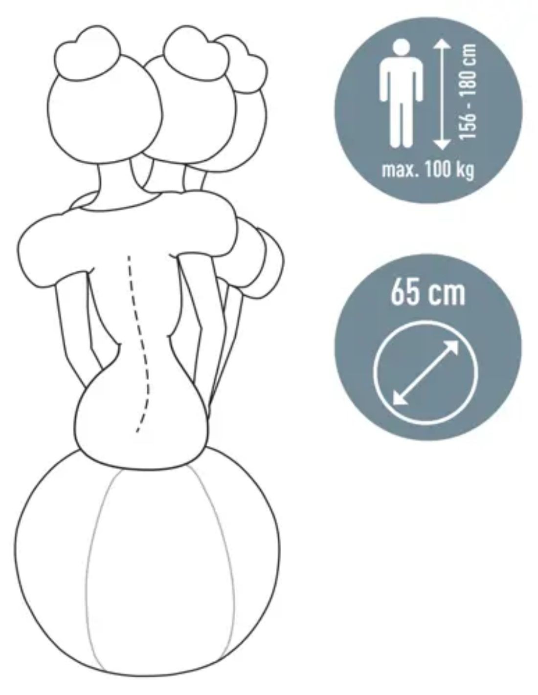 - Generoso diámetro de 65 cm con una bola interior resistente sin ftalatos, puede soportar hasta 100 kg..