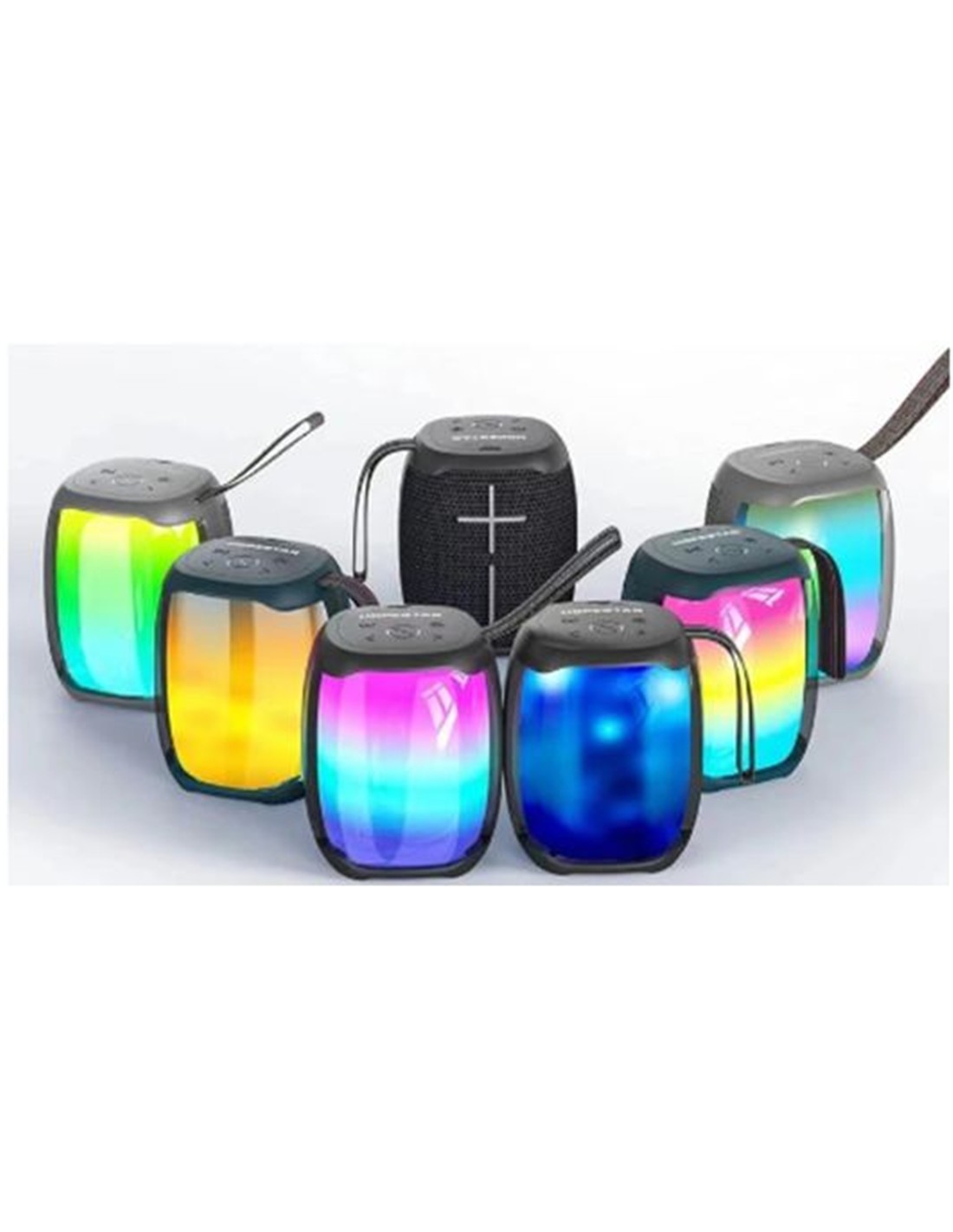 Altavoz portátil con bluetooth, recargable y con batería de litio de 1800mAh. Sonido de alta calidad con una potencia de 10W y graves potentes. Tiempo de reproducción de aprox. 4 - 6 horas y resistente al agua con grado de impermeabilidad IPX6. Distancia de transmisión de 10 metros, bluetooth V5.0 ¿ 5V 1A y gancho de tela.EAN: 6972567700690