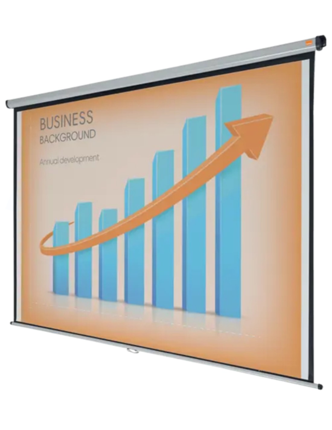 Pantalla-200 de Phoenix Technologies es una pantalla versátil de vídeo-proyección manual retráctil que apenas ocupa espacio. Si buscas una pantalla asequible y ligera para instalarla en tu oficina, centro de negocios, escuela o sala de reuniones, este modelo de 100" es justo lo que necesitas. Con tan solo tirar ligeramente de la anilla, la pantalla se despliega fácilmente y se retrae sin problemas.
