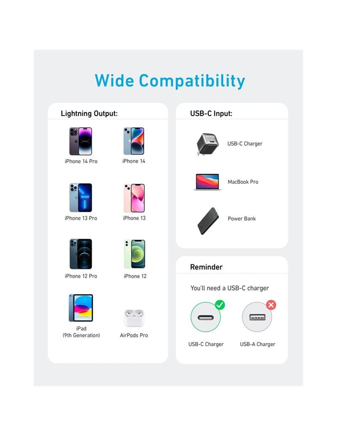 - Compatible con Alta Velocidad: Carga un iPhone 14 Pro al 50% en solo 30 minutos cuando se utiliza con un cargador Power Delivery compatible (cargador no incluido).