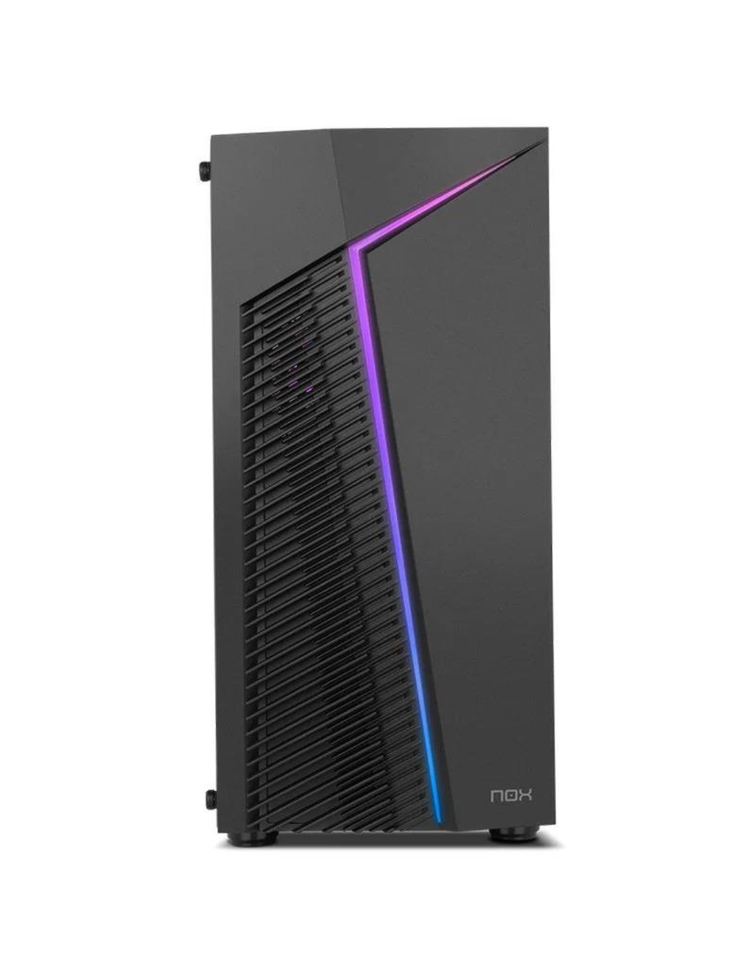 Nox Infinity Zeta cuenta con un diseño minimal adornado por una tira LED ARGB que recorre todo su frontal. En su panel superior podrás encontrar un botón para controlar la combinación de luces que mejor se adapte a ti de una manera fácil y rápida. Asimismo, incorpora dos puertos USB 2.0 y un puerto USB 3.0 de alta velocidad, así como las conexiones de audio.