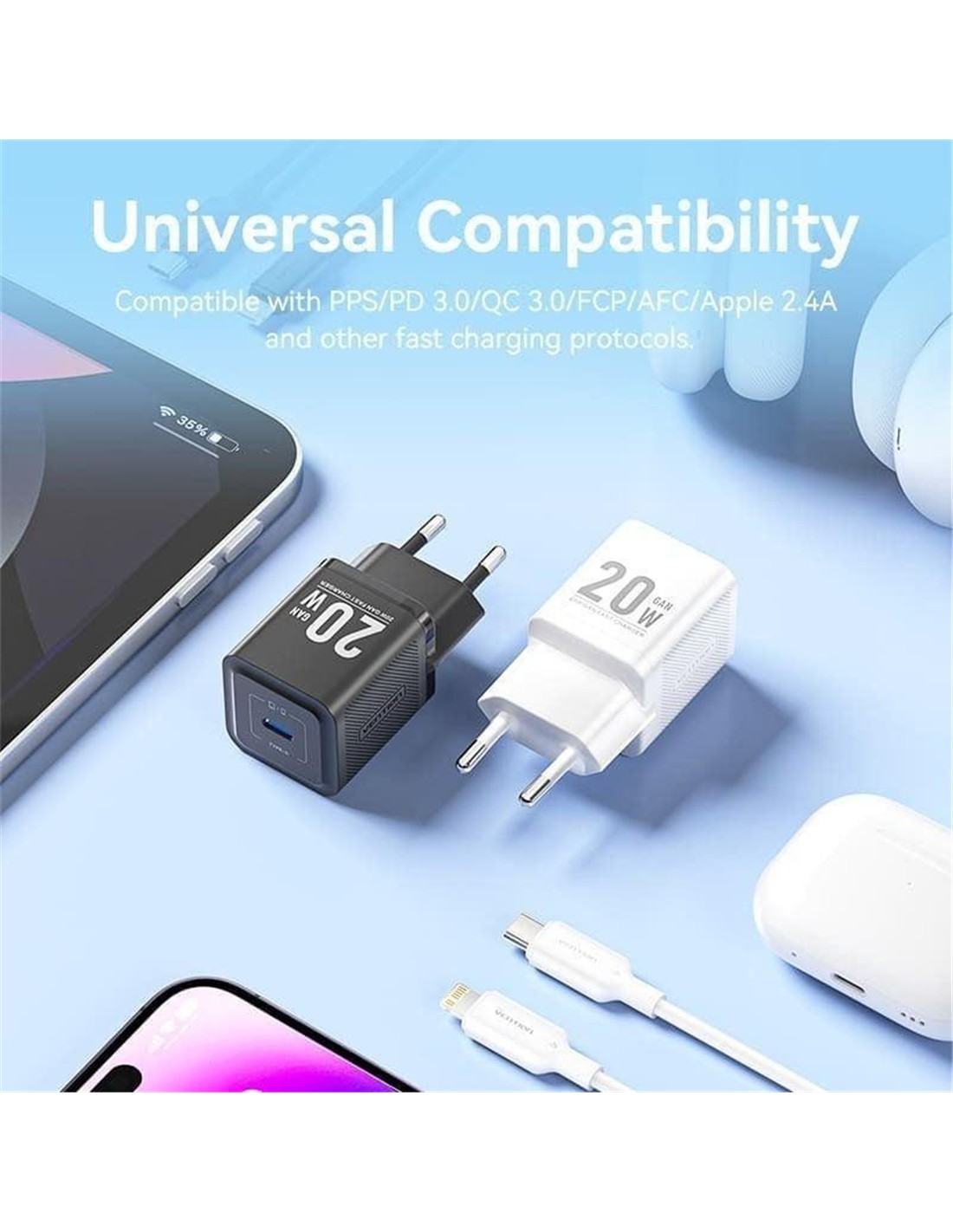 Compatible con carga rápida: PD3.0, QC3.0, PPS, FCP, AFC, Apple 2.4A
