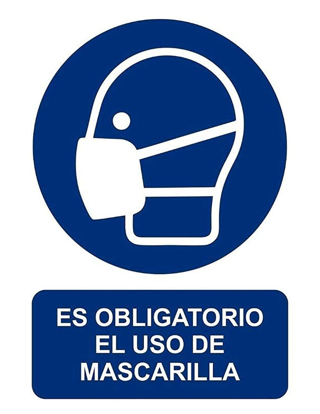 CARTEL PVC AZUL OBLIGATORIO USO MASCARILLA