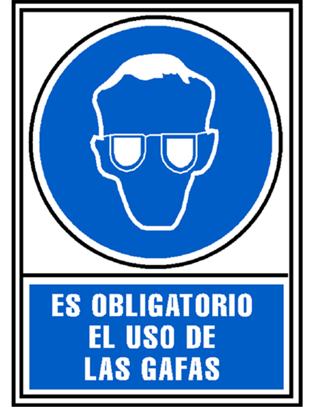 CARTEL PVC AZUL USO OBLIGATORIO DE GAFAS