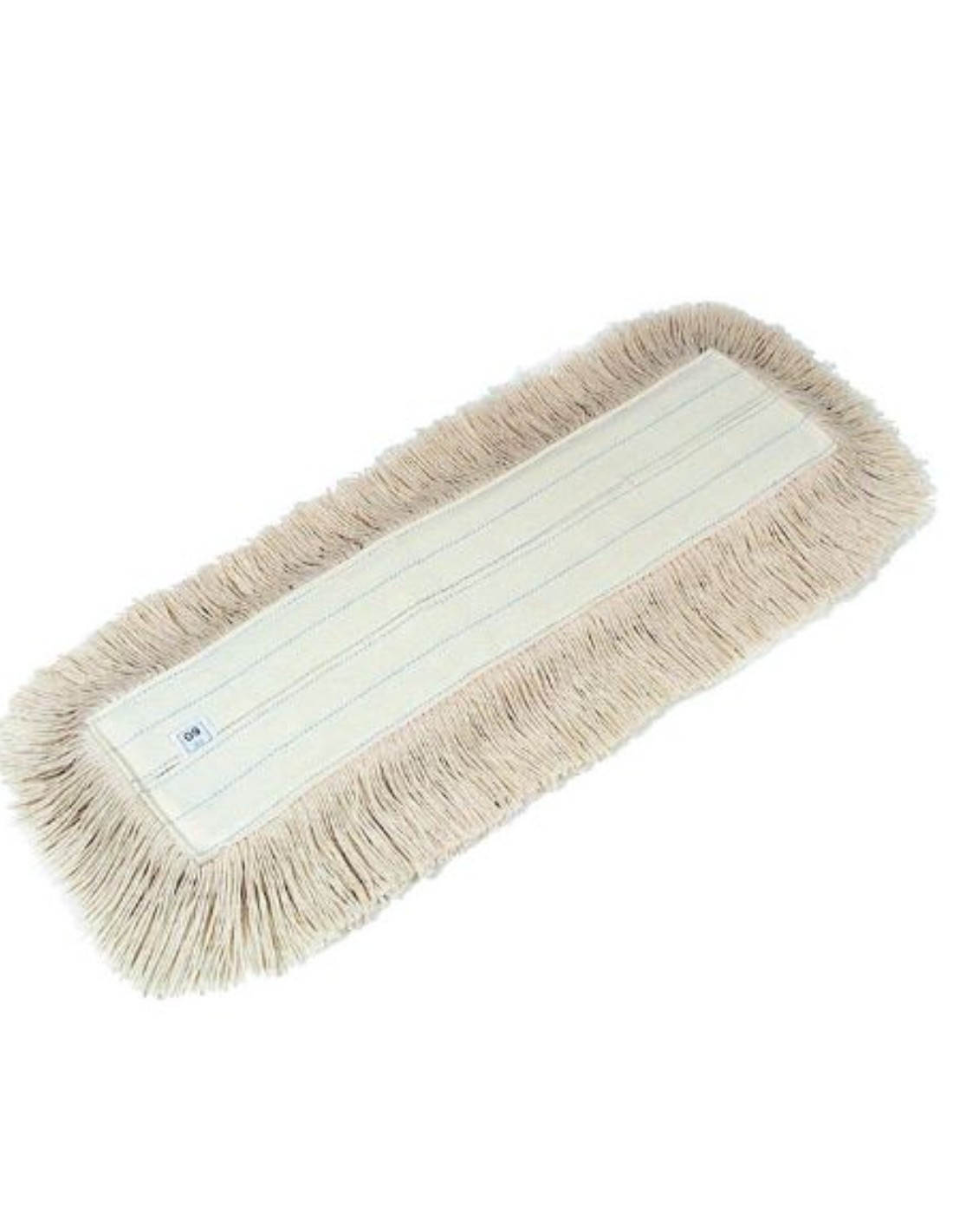 Recambio de mopa plana profesional de hilo de algodón blanco de 15x60 cms. Tipo de sujeción con bolsillo+broche para bastidores de 15 cms de ancho.