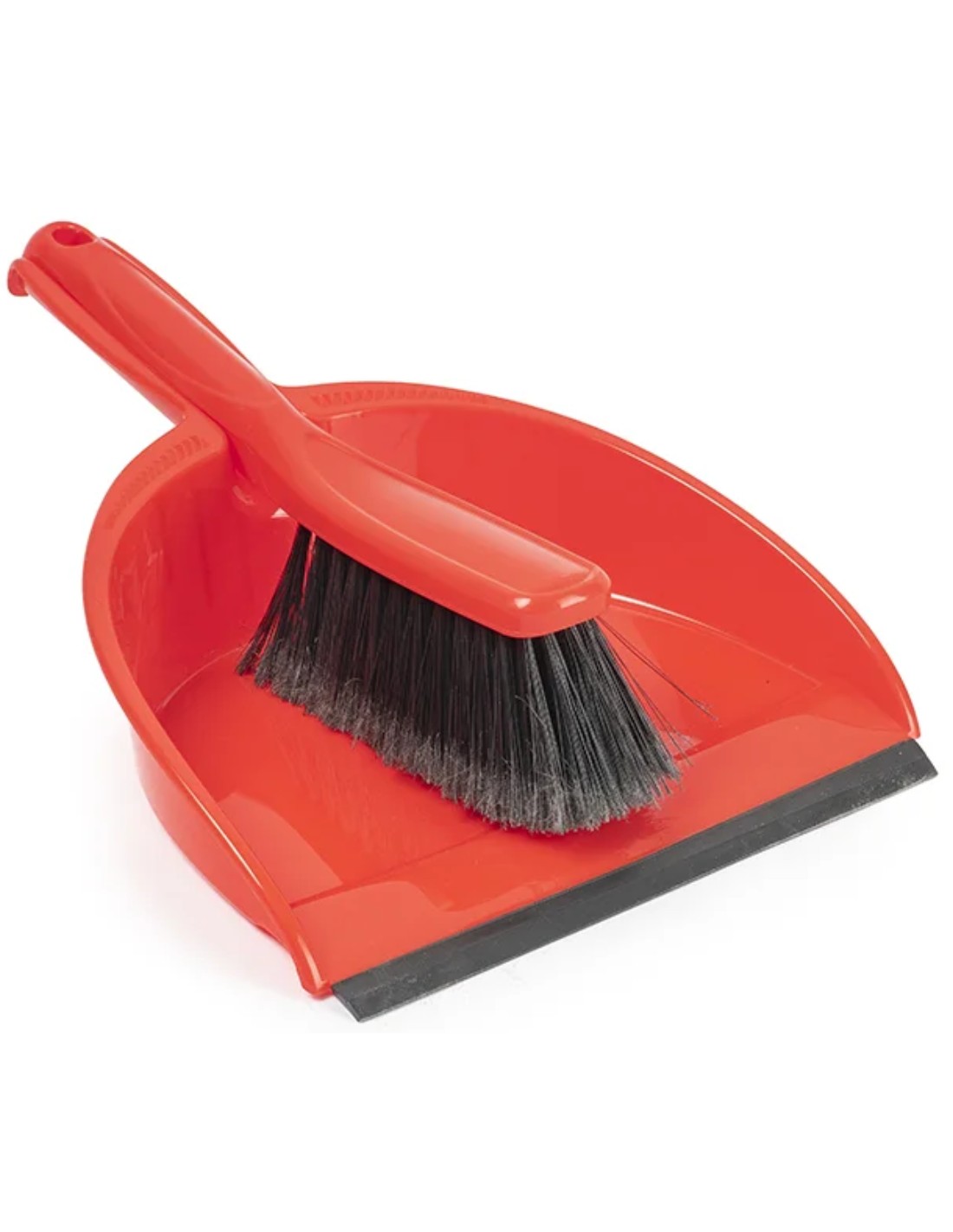 Recogedor de mano con cepillo, apta para recoger sólidos. Fabricado e n plástico y fibras de polietileno
