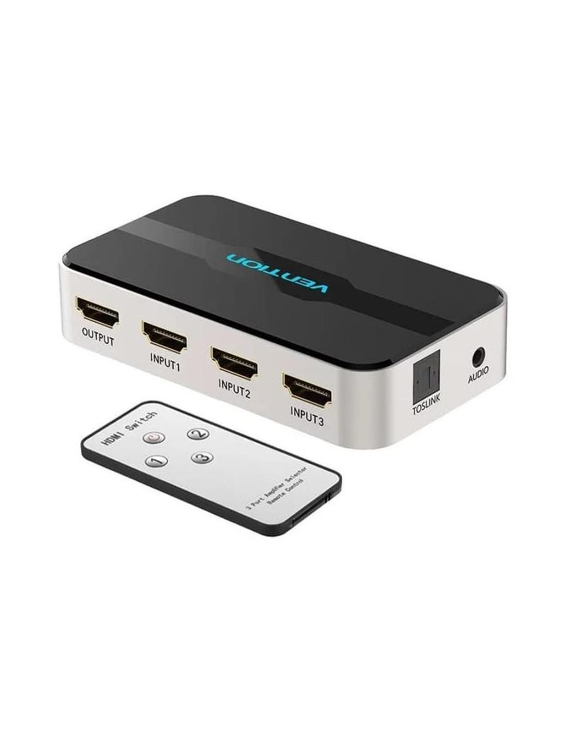 Control: Incluye un mando a distancia que permite cambiar entre dispositivos desde hasta 8 metros de distancia.?