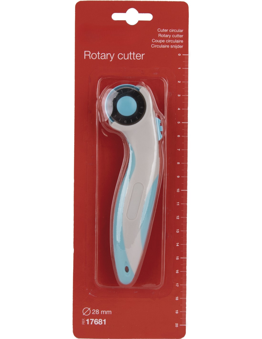 Cúter circular de tamaño Ø 28 mm, ideal para todas tus manualidades y trabajos. Hoja de acero inoxidable, mango ergonómico para una mayor comodidad y bloqueo de seguridad. Ideal para marcar, recortar o realizar cortes de precisión en papel, cartón, plástico, tela y madera.