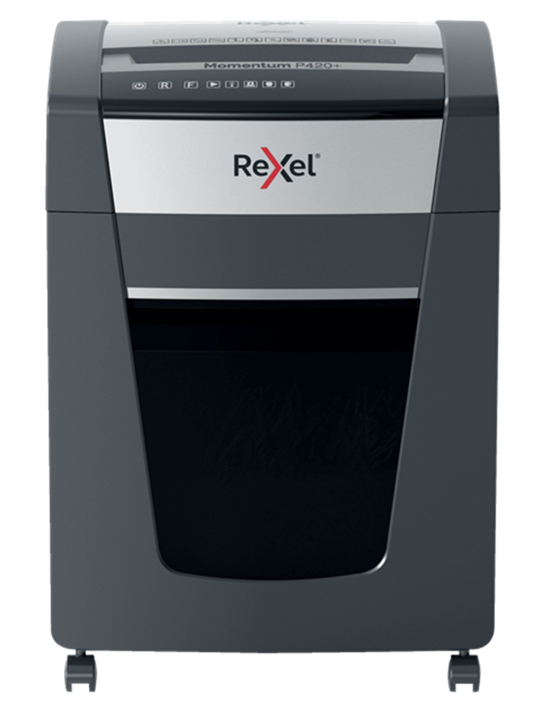 Las destructoras de papel sin atascos Rexel Momentum son ideales para destruir documentos confidenciales en la oficina. La destructora P420+ destruye hasta 20 hojas de papel A4 (80 grs) de una sola vez a través de la ranura de alimentación manual en partículas P-4 (4x35mm). La tecnología de detección activa mide el número de hojas que se alimentan en tiempo real para detener los atascos y los errores de alimentación del papel; se indica mediante un LED rojo en el panel de control. Esta destructora de papel no funcionará hasta que el número de hojas se reduzca por debajo de la capacidad máxima de hojas o la alcance. Esta destructora está diseñada para un uso moderado o intenso gracias a su gran capacidad de hojas, su gran papelera de 30 litros y su larga duración de hasta 4 horas. No es necesario alimentar manualmente el papel, ni quitar las grapas y los clips primero.