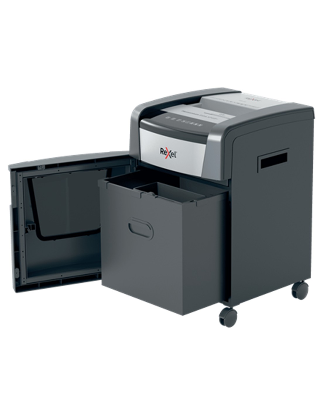 Las destructoras de papel sin atascos Rexel Momentum Extra son ideales para destruir documentos confidenciales en la oficina. La destructora XP418+ destruye hasta 18 hojas de papel A4 (80 grs) de una sola vez a través de la ranura de alimentación manual en partículas P-4 (4x35mm). La tecnología de detección activa mide el número de hojas que se alimentan en tiempo real para detener los atascos y los errores de alimentación del papel; se indica mediante un LED rojo en el panel de control. Esta destructora de papel no funcionará hasta que el número de hojas se reduzca por debajo de la capacidad máxima de hojas o la alcance. Esta destructora de corte en partículas está diseñada para un uso moderado o intenso gracias a su gran capacidad de hojas, su gran papelera de 45 litros y su tiempo de funcionamiento continuo. No es necesario quitar primero las grapas y los clips; esta destructora de Rexel también destruye de forma segura CD, DVD y tarjetas de crédito a través de una ranura de alimentación independiente.