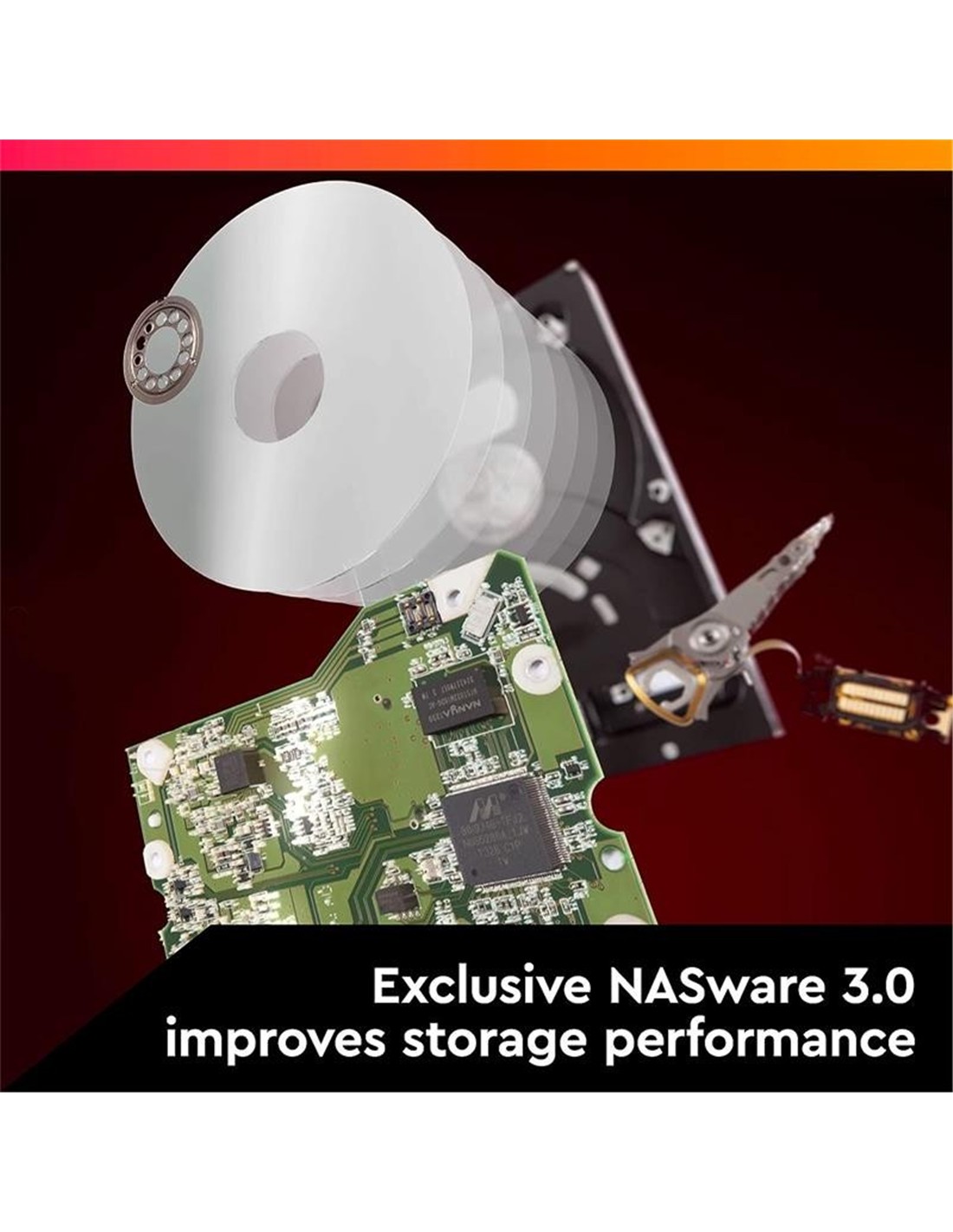 - NASware 3.0. exclusivo: No sirve cualquier disco. Con un sistema NAS de 8 compartimentos, podrá conseguir hasta 112 TB de capacidad. Además, gracias a la exclusiva tecnología NASware 3.0 de Western Digital, podrá optimizar cada disco. La avanzada tecnología NASware 3.0, incluida en cada disco duro WD Red? Plus, mejora el rendimiento de almacenamiento aumentando la compatibilidad, la integración, la fiabilidad y las posibilidades de mejora.