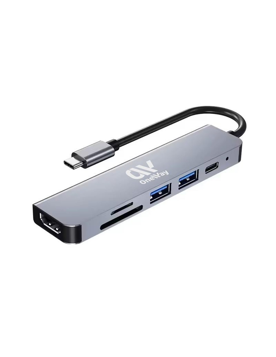 El Dock Hub ONEWAY USB-C 6 en 1 es una solución versátil y compacta para expandir las capacidades de tu dispositivo USB-C. Con un puerto HDMI 4K, dos puertos USB 3.0, un puerto USB-C de carga, y ranuras para tarjetas SD y Micro SD, este hub es ideal para conectar múltiples dispositivos y periféricos mientras mantienes una alta velocidad de transferencia de datos y video.