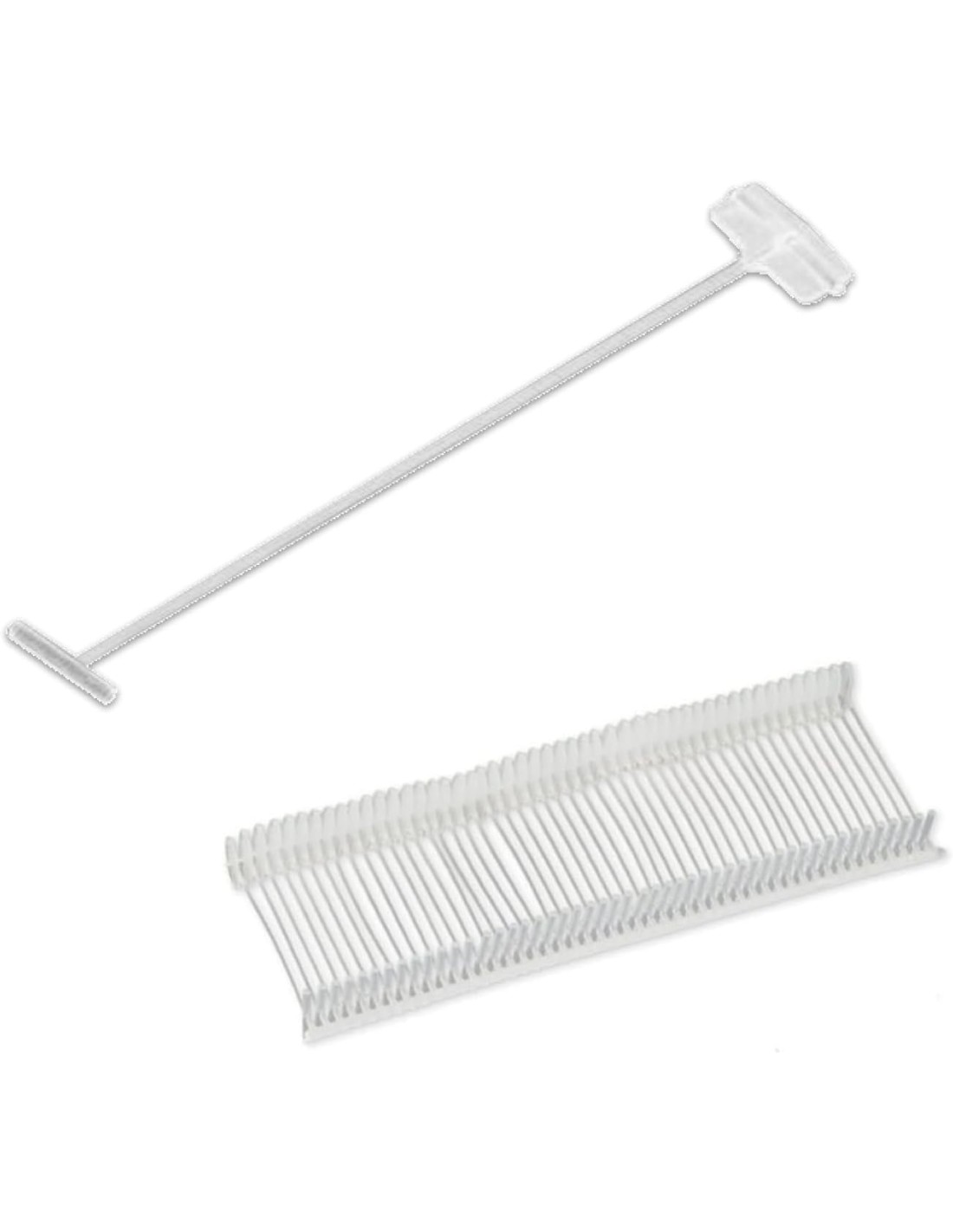 Navetes Finos de 50mm de longitud para pistola etiquetadoras textil de aguja FINA ref:101546 Adecuados para prendas de ropa o telas delicadas. caja de 5000 navetes, cierres de plastico o plastiflechas