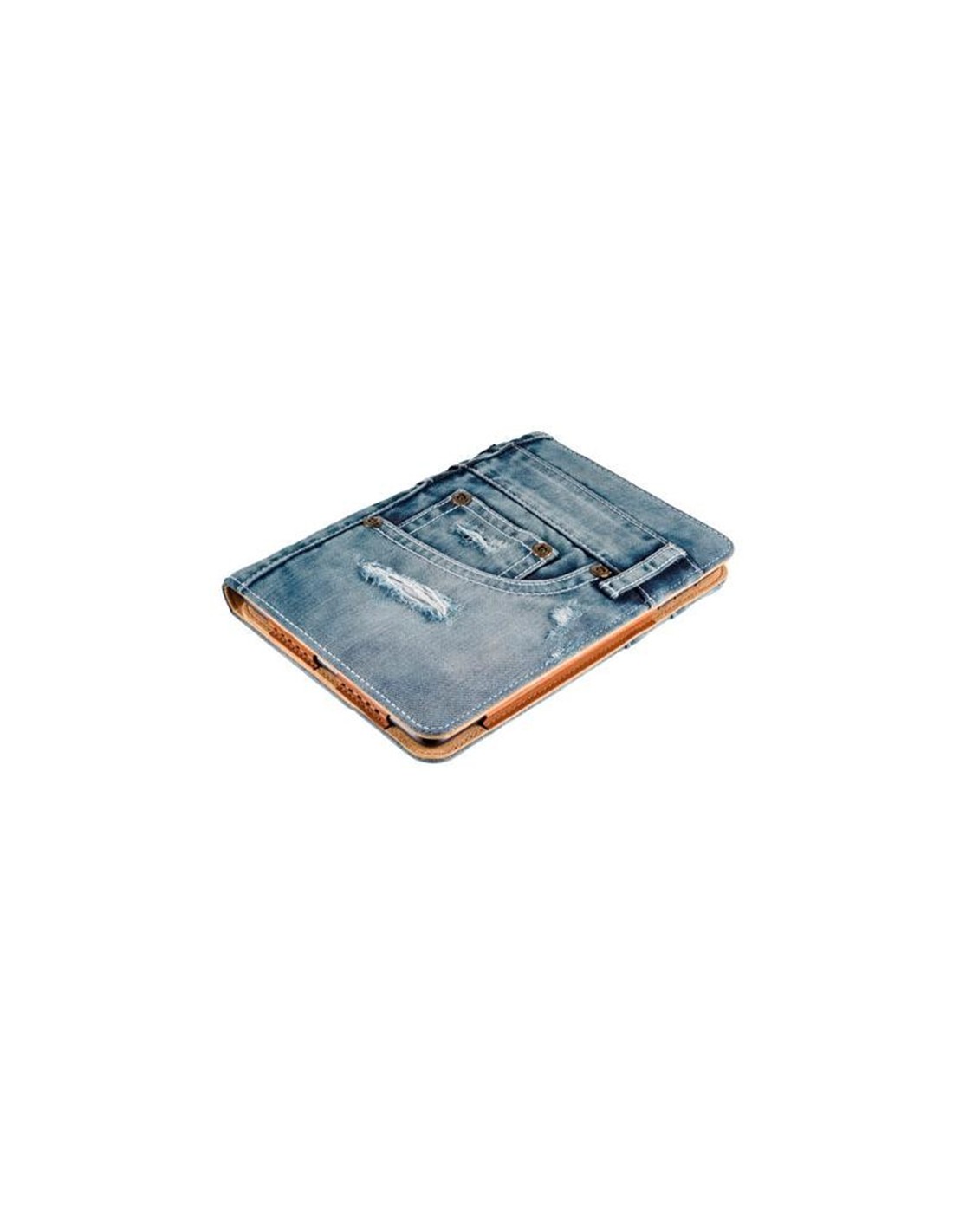 Hoja protectora con soporte de visualización para iPad mini diseÇñados en vaquero deslavado y con detalles vaqueros