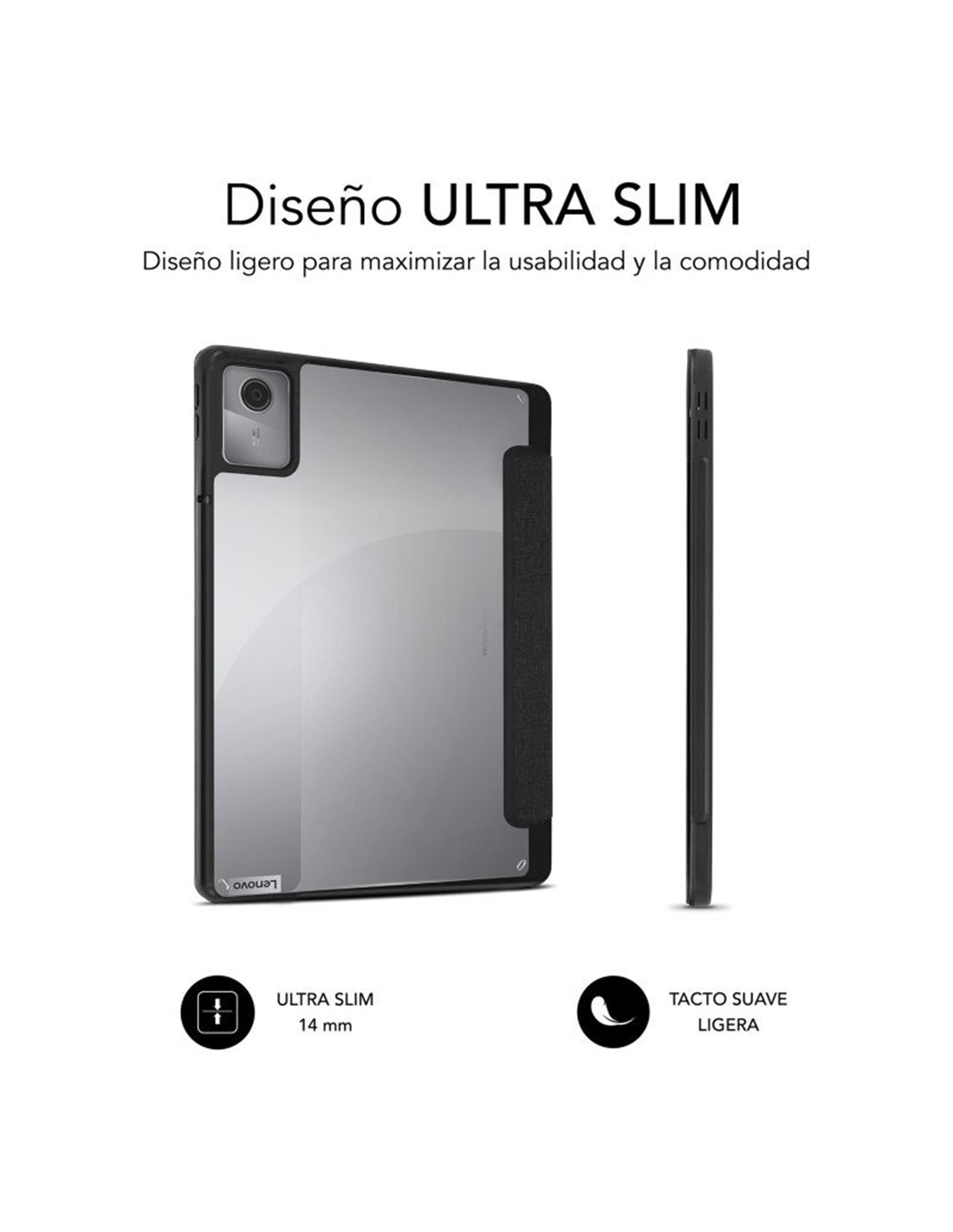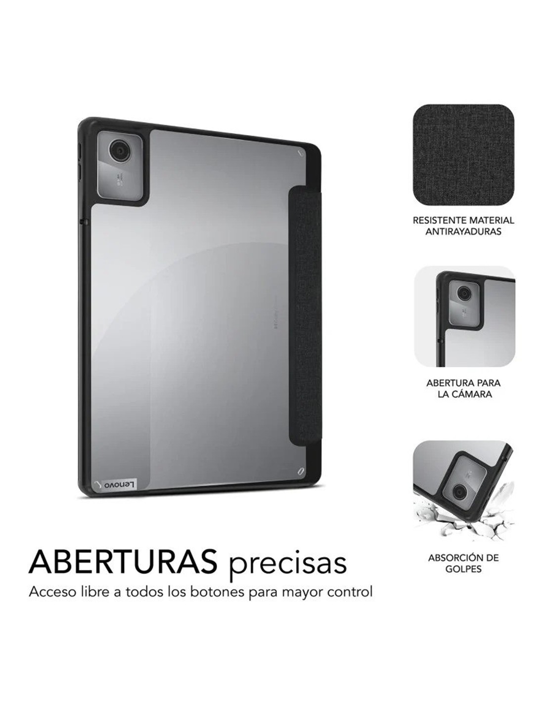 La funda SUBBLIM para Lenovo Tab M11 destaca por su diseño Full SmartCover y su estructura monobloque de termoplástico, facilitando la disipación de impactos y proporcionando una barrera eficaz ante caídas accidentales. Su sección trasera transparente permite exhibir la estética original de la tablet sin renunciar a la seguridad, mientras que los bordes reforzados con tecnología Shock Absortion absorben y dispersan la energía de los golpes.