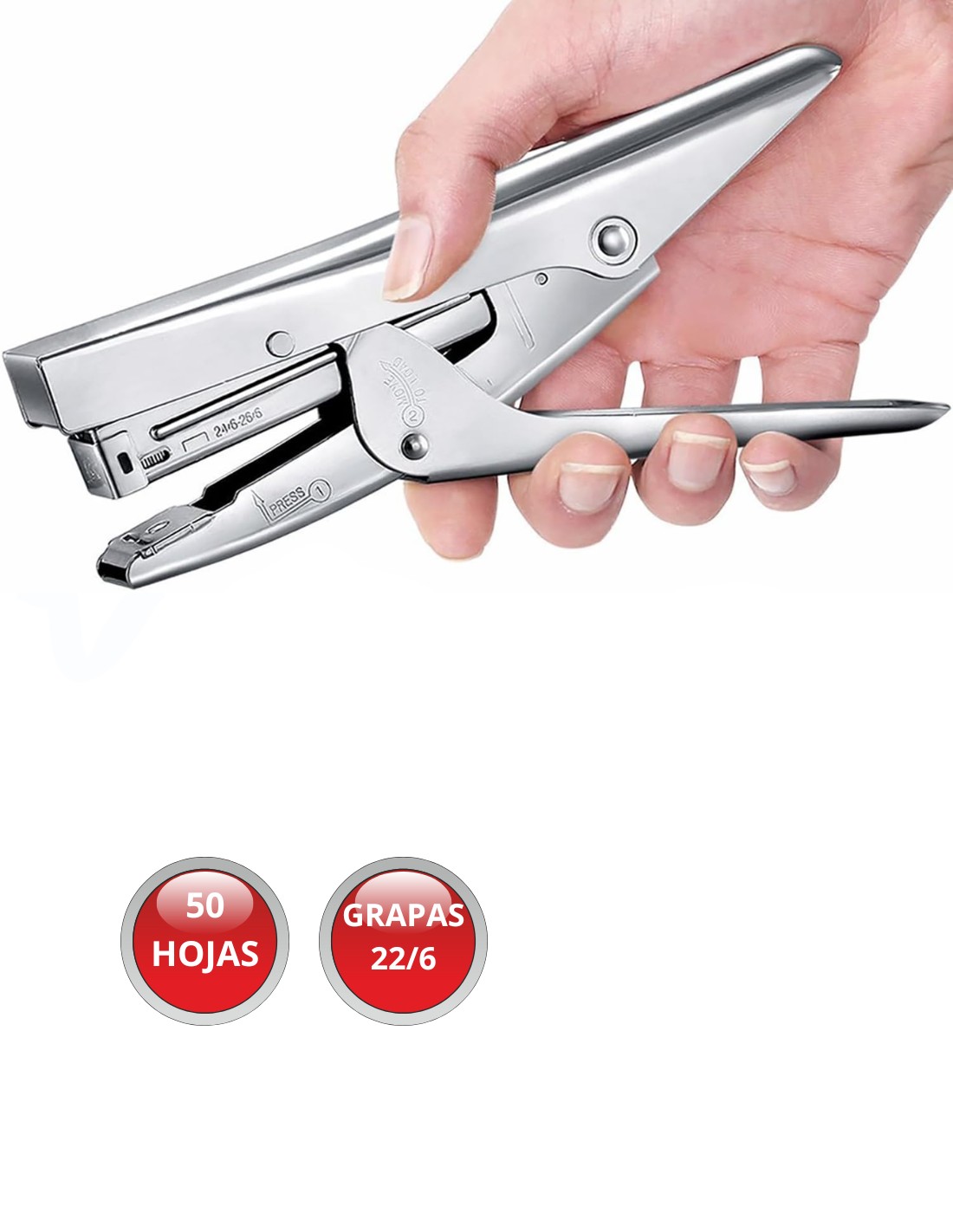 - Grapas 26/6 - capacidad para 150 grapas.