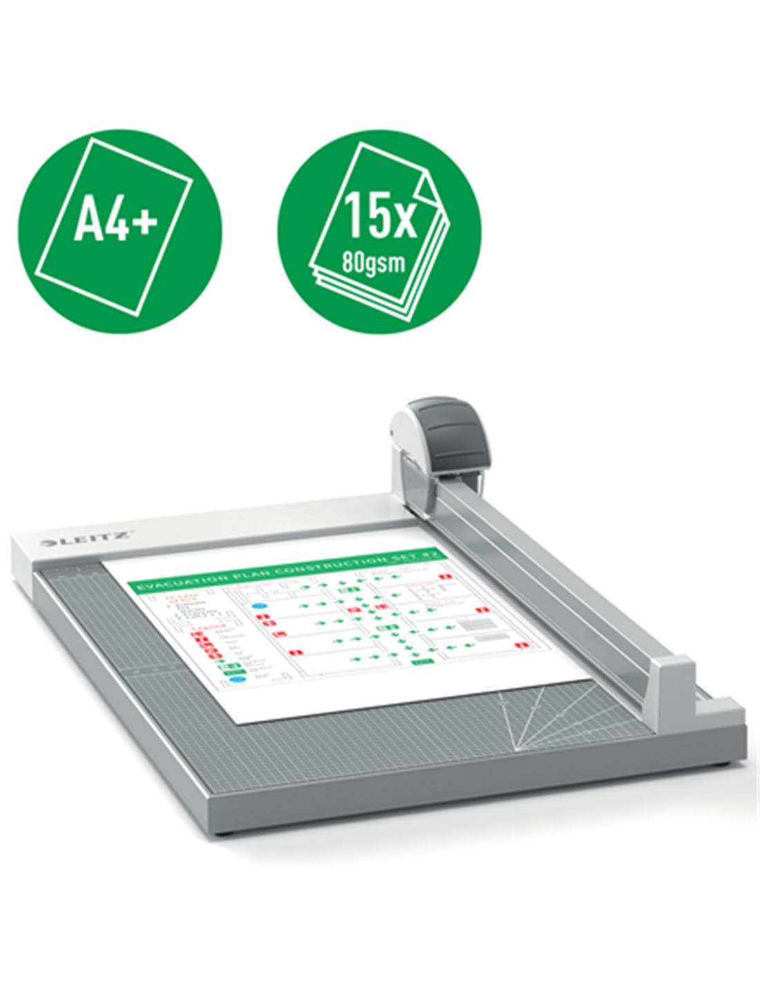 La cizalla Leitz Precision Office A4+ es perfecta para todas tus tareas diarias de recorte de papel en la oficina o para manualidades profesionales. Esta robusta pero versátil cizalla recorta sin esfuerzo hasta 15 hojas de papel A4 (80 grs) con rapidez y precisión gracias a su cuchilla giratoria recta y puede guardarse fácilmente cuando no se utiliza. Elige entre cuchillas rectas, onduladas o perforadoras que vienen en cartuchos de plástico transparente 100% seguros y fáciles de cambiar. El cabezal de corte de fácil agarre es cómodo de usar, mientras que el puntero de corte claro te permite ver la línea de corte de la cuchilla para obtener una precisión total en todo momento. Es rápido y fácil insertar el papel con la pinza automática y las claras directrices de medición permiten una alineación precisa. Con una cuchilla giratoria de acero rectificada y segura, una superficie de trabajo robusta y una garantía ampliada de 5 años, tendrás la tranquilidad de que esta cizalla de papel de alta calidad te proporcionará un recorte preciso durante muchos años.