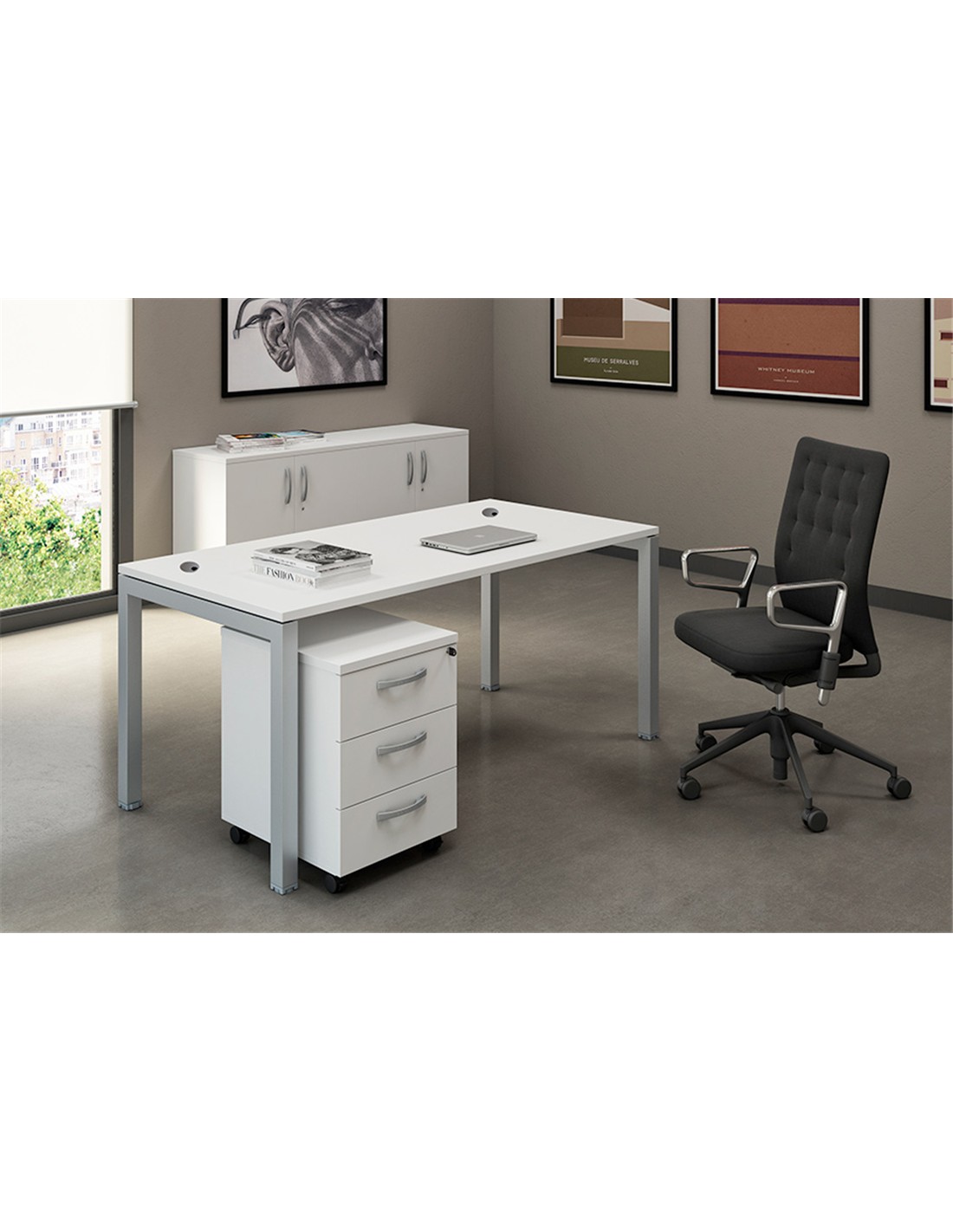 Estructura metálica, con pata maciza de sección 50x50 mm. en tres acabados: gris aluminio ; blanco ; gris antracita .