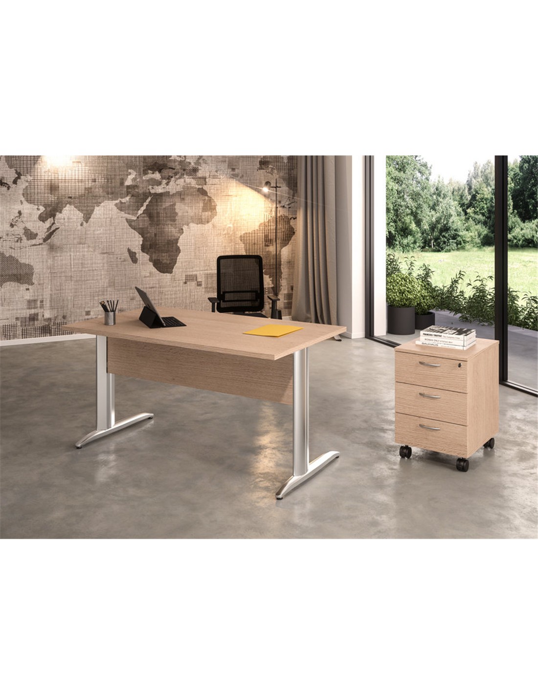 Mesa presto 140 haya pata metal. sobre melamina 22mm de grosor con cantos abs 3mm grosor.