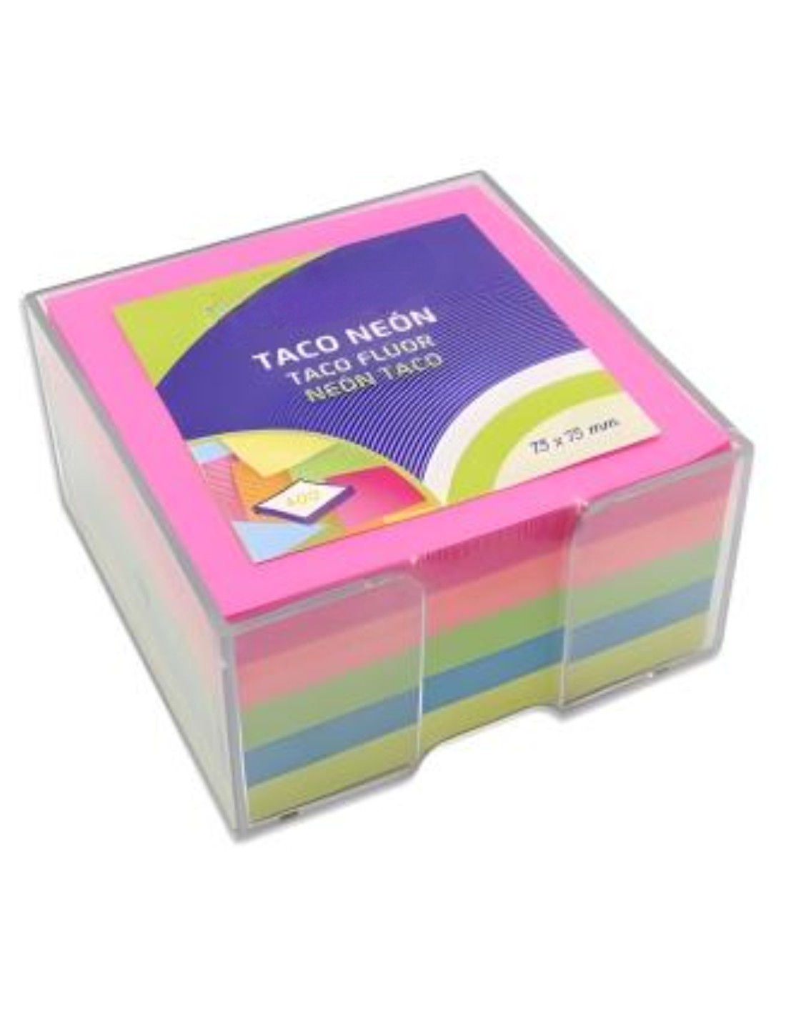 Taco de Notas Neón 400 Hojas 75x75mm con Caja - Color Fluorescente
