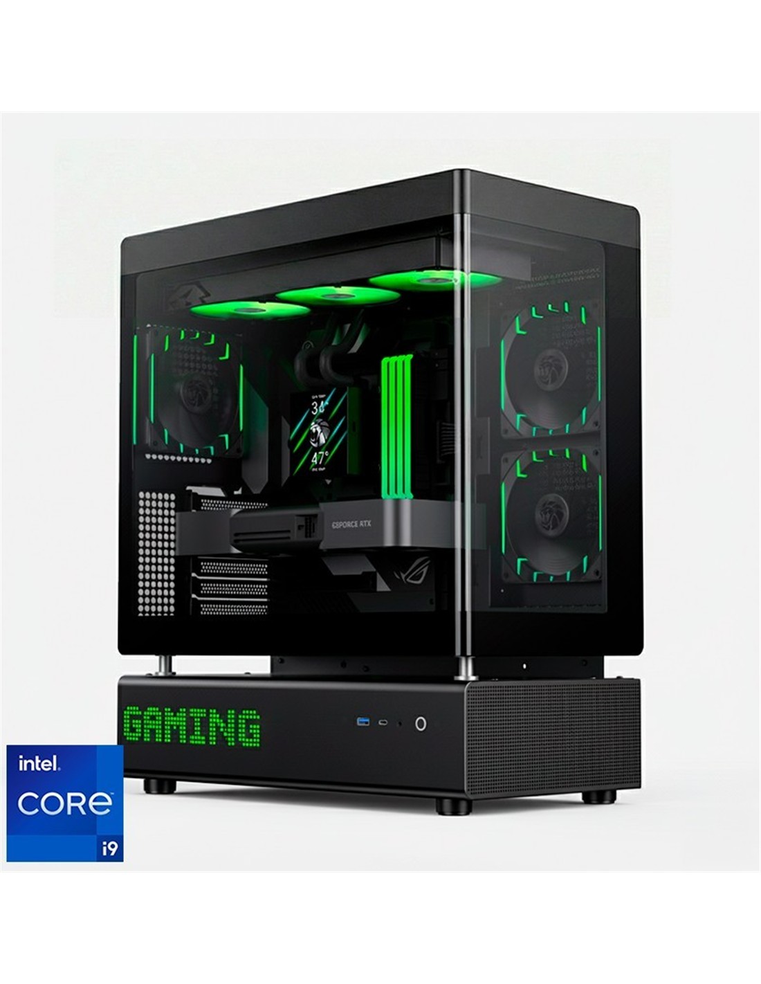 Diseño premium con panel lateral para presumir de hardware y una estética cuidada al detalle.