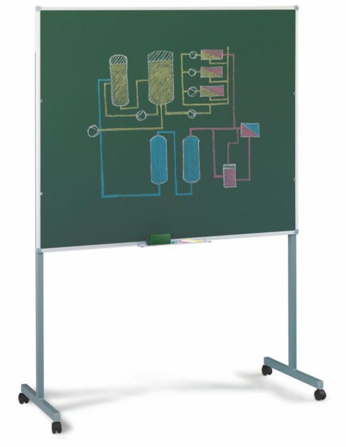 Juego de soportes con ruedas, todas ellas con freno y accesorios de colocación. Apto para pizarras de medida máxima de 122×244 cm.