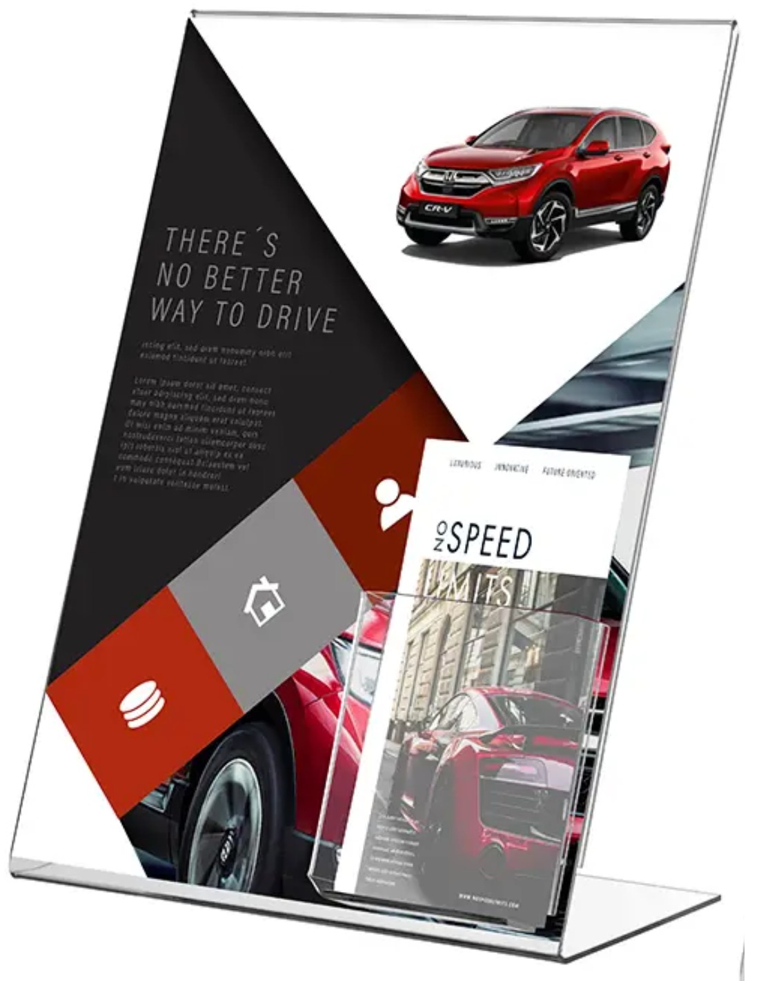 • Expositor sobremesa en forma de L A4 horizontal.