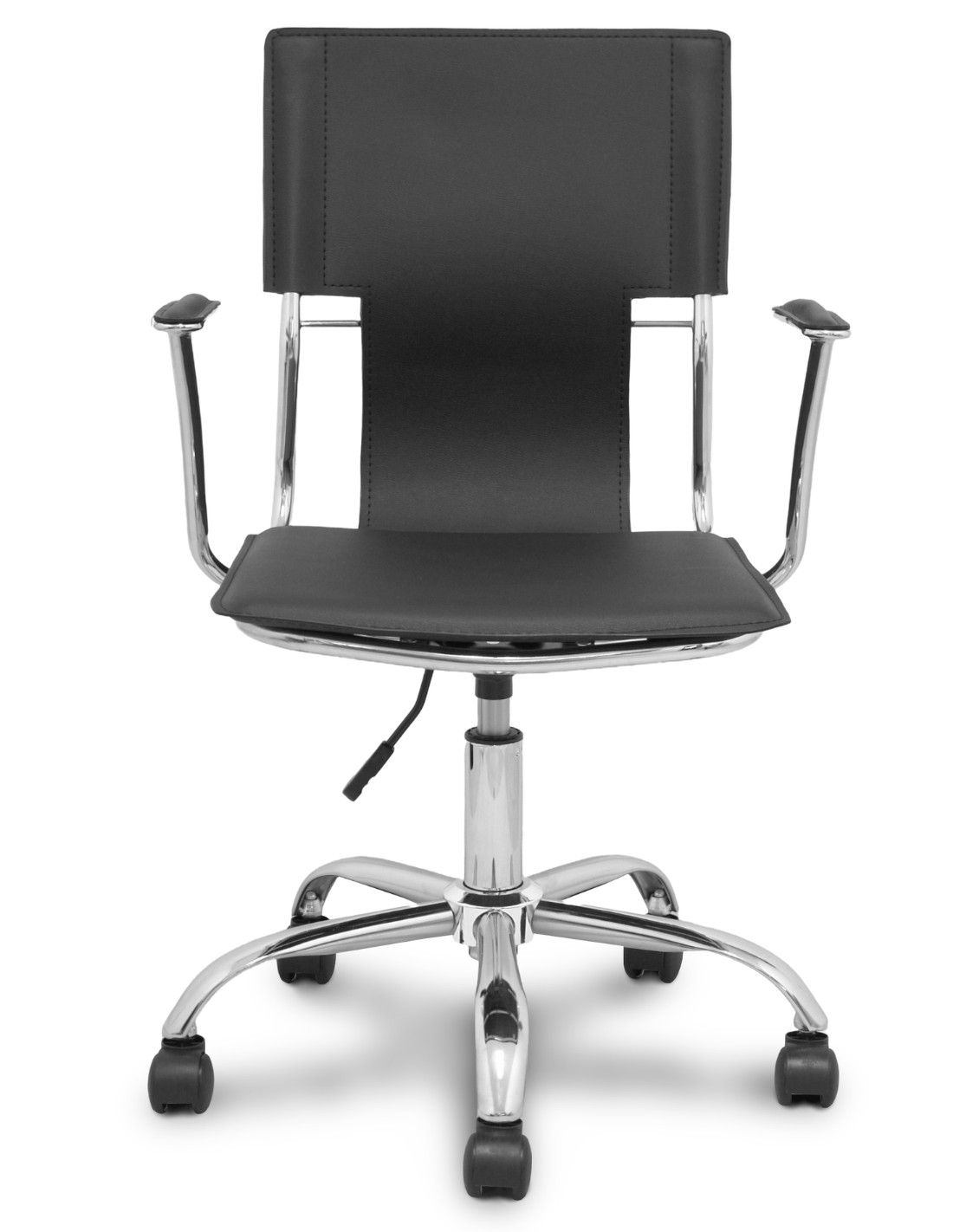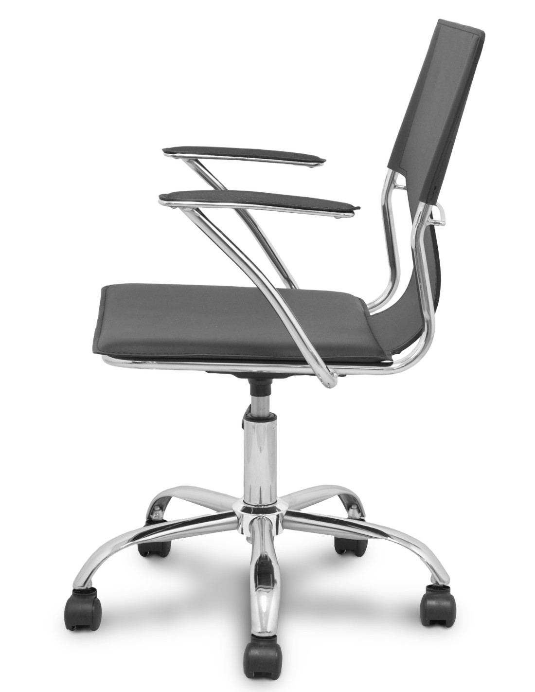 Silla de oficina de elegante diseño, su estructura cromada y su tapizado en similpiel la hace idónea para cualquier tipo de oficina y para el hogar. También es buena para la habitación de los niños
