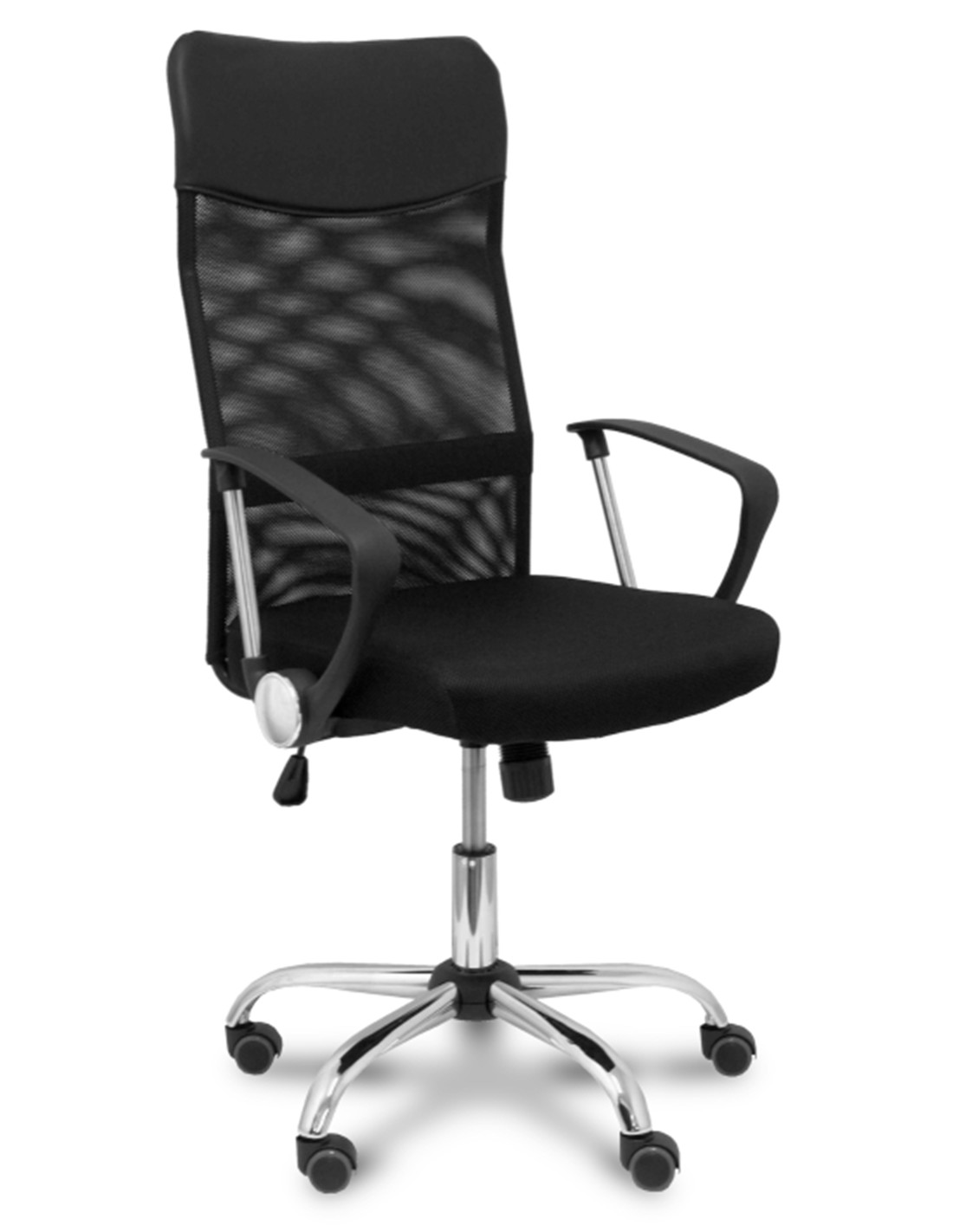Silla de dirección ergonómica con mecanismo basculante, brazos fijos y regulable en altura