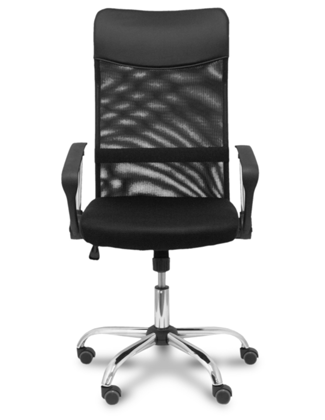 Respaldo de malla de nailon color negro y asiento tapizado en tejido de malla color negro, combinado con similpiel color negro