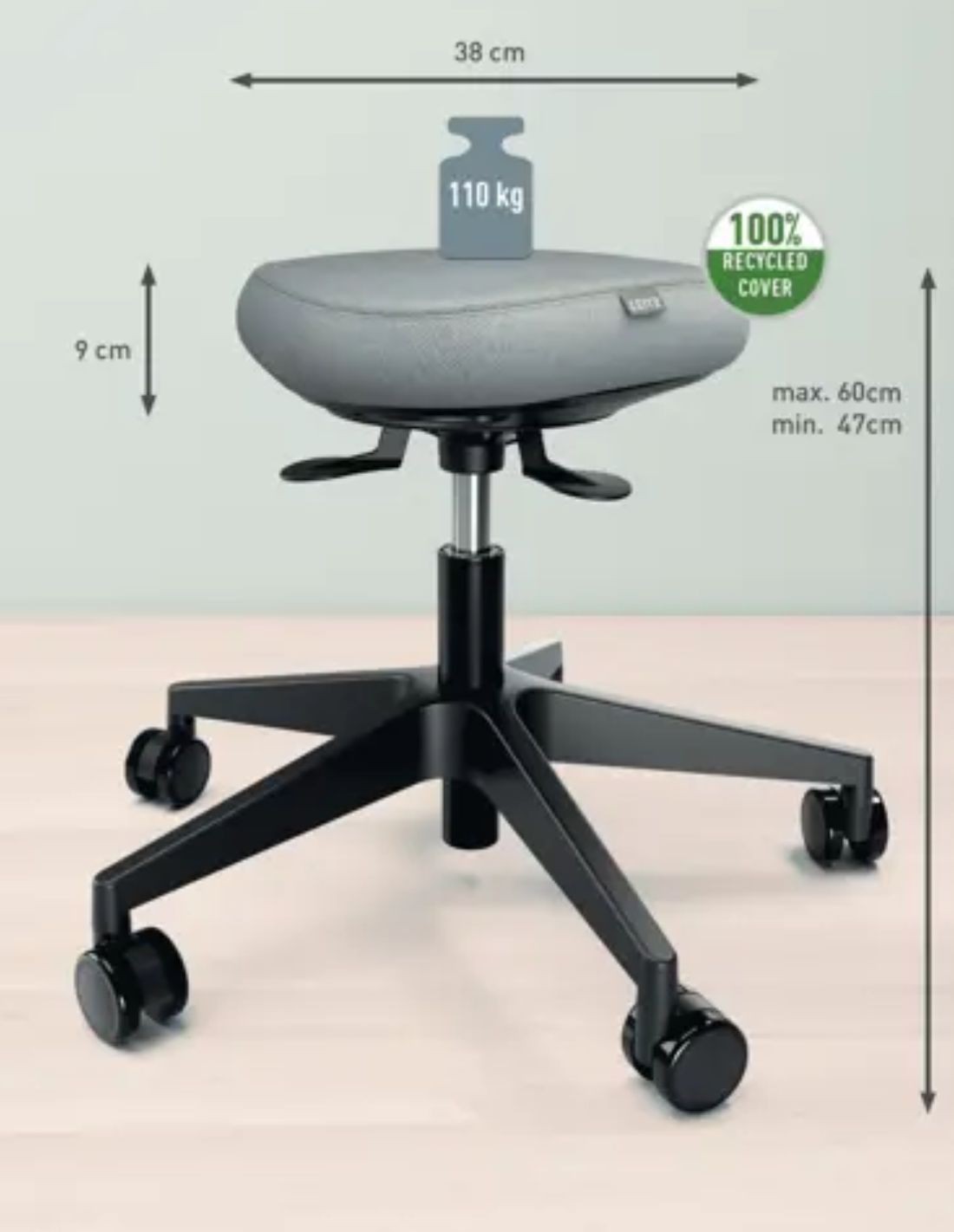 Este taburete con ruedas de diseño moderno es ideal para mejorar el confort y maximizar la productividad, y se adapta perfectamente a muchos entornos. Nuestra misión es ofrecer soluciones que permitan a las personas prosperar en el trabajo y fuera de él, fomentando una salud mental y un bienestar físico positivos. Combínalo con otros productos Leitz Ergo para personalizar tu estación de trabajo flexible e individual sit, stand & move. Mantente activo, siéntete inspirado y disfruta de la comodidad en el trabajo y fuera de él, donde el diseño centrado en el ser humano se combina con la máxima calidad y la precisa ingeniería alemana. FEEL GOOD con Leitz.