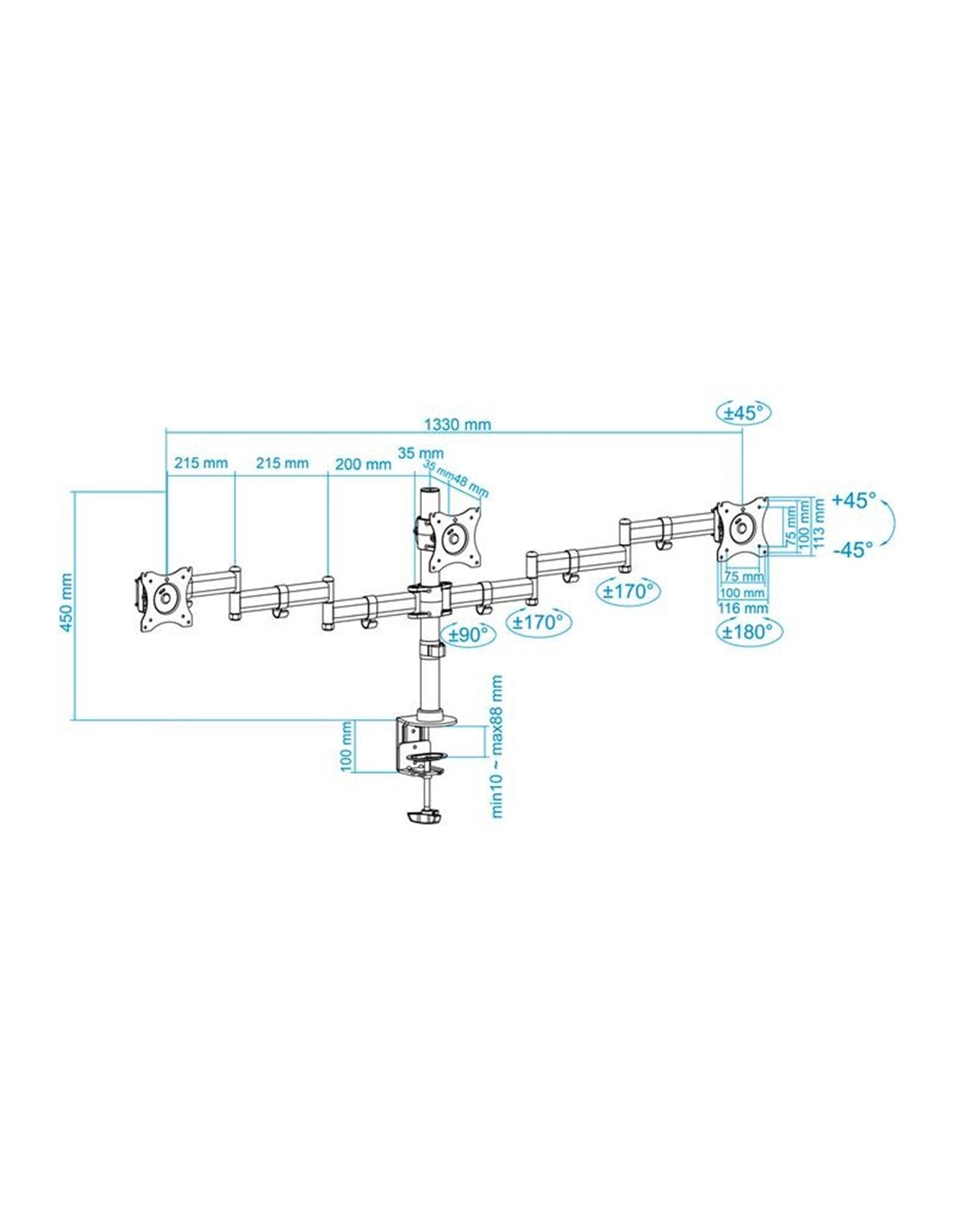 - Soporte de mesa orientable para 3 pantallas (monitor / plasma / LCD / LED) de 13 a 27 (depende de la instalación y del espacio disponible)
