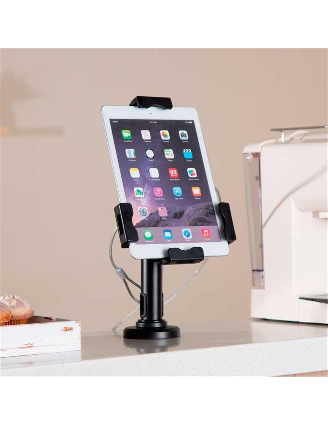 - Soporte profesional antirobo de sobremesa / pared ajustable para tablet.