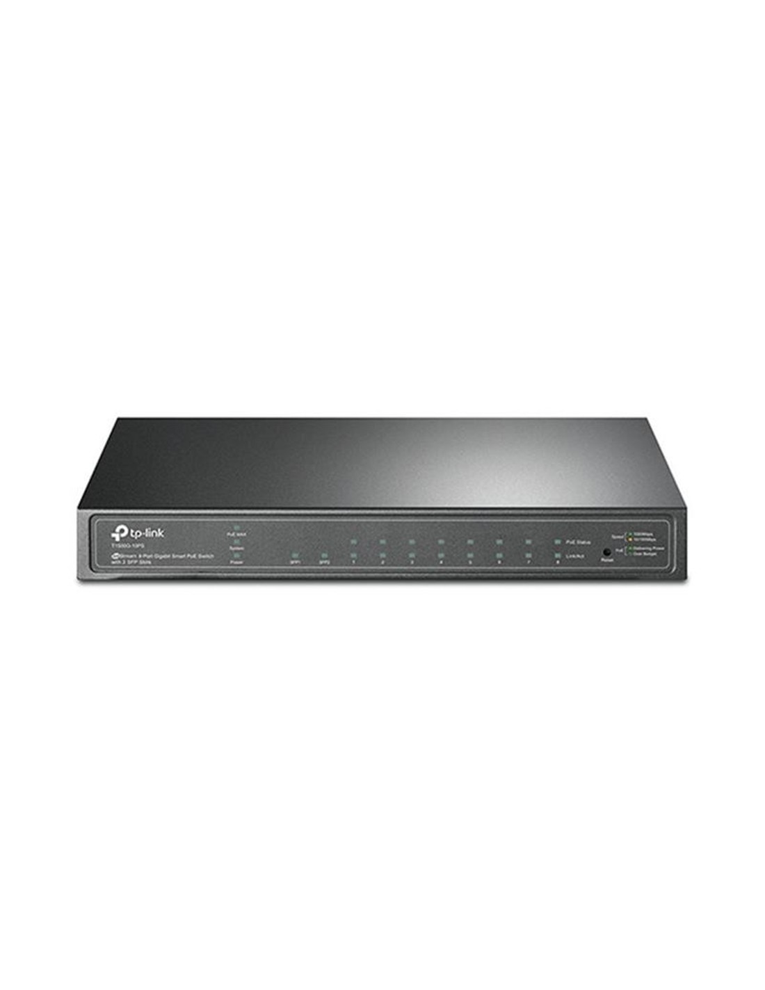 El Smart Switch T1500G-10PS de TP-Link JetStream cuenta con 8 puertos RJ45 gigabits y 2 ranuras SFP, todos los puertos RJ45 admiten el estándar 802.3af con una potencia total de 53W y funciones de administración de energía PoE útiles.