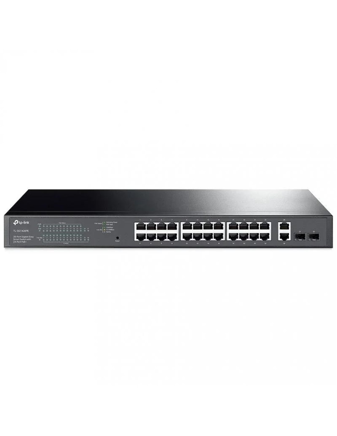 - Conmutador de 24 puertos RJ45 PoE+ de 10/100/1000 Mbps con 2 ranuras SFP