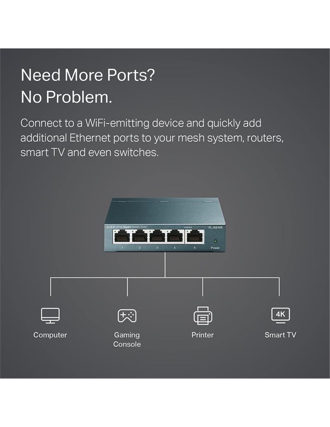 SWITCH TP-LINK TL-SG105S GIGABIT 5 PUERTOS METALIC